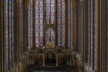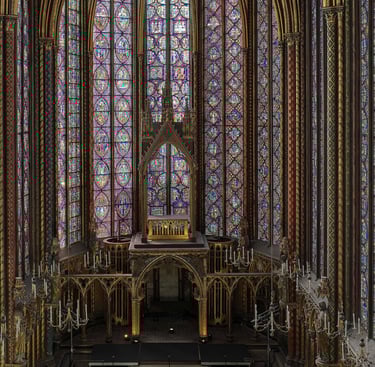 La chapelle haute avec ses 600 m2 de verrière offre un des ensembles les plus complets de cette époque d'âge d'or du Moyen-Âge.