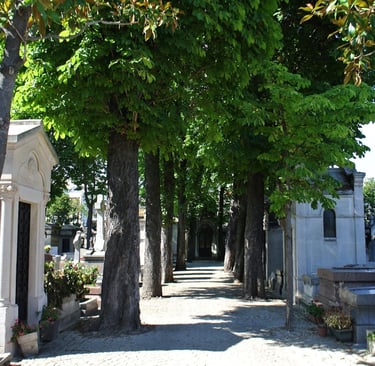 Le cimetière de Passy: dominant discrètement la place du Trocadéro, le cimetière de Passy est sans doute l'un des plus petits de Paris. Avec seulement 2600 tombes, il concentre un nombre impressionnant de personnalités, d'artistes, comme la famille Manet, Robert Mallet-Stevens, Fernandel....mais aussi des industriels de renom tels les Givenchy, Guerlain ou Bouygues, ainsi que de grandes personnalités du monde des lettres.